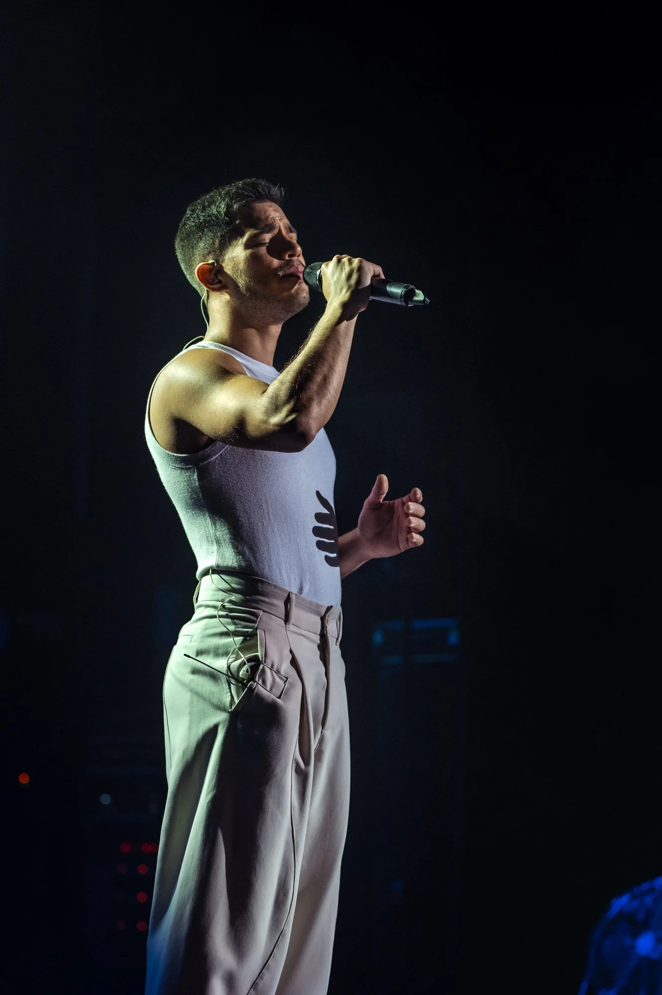 Pedro da Costa, singer and songwriter based in Barcelona, performing pop music live on stage during La Voz España